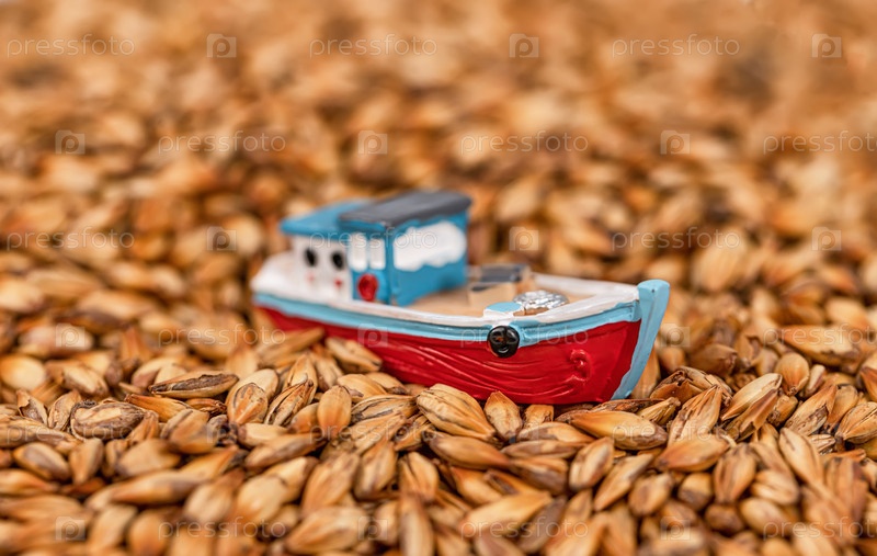 Маленькая игрушечная лодочка плывет по зерновому морю