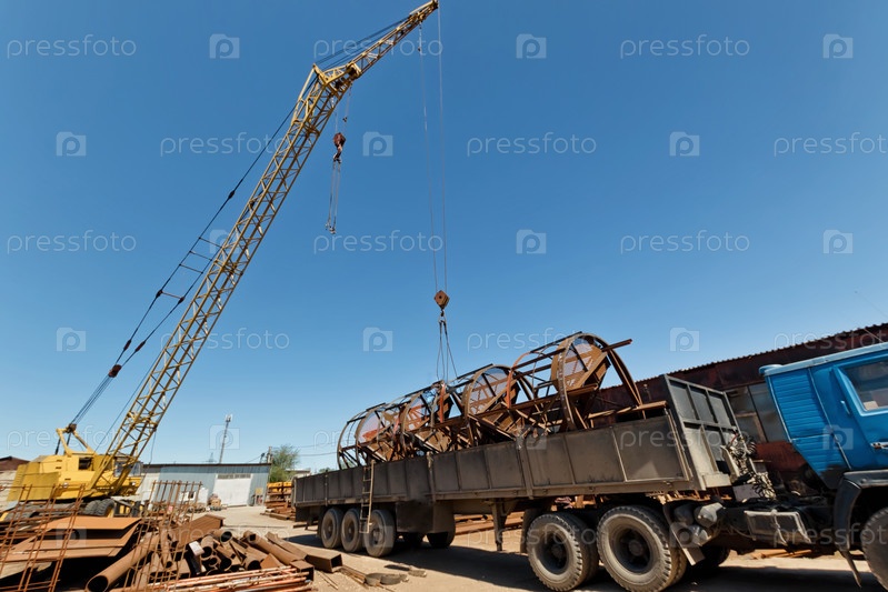Погрузка крупногабаритных металлоконструкций на грузовик с помощью крана