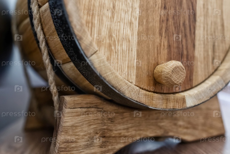 Небольшая деревянная дубовая бочка для домашнего производства алкоголя