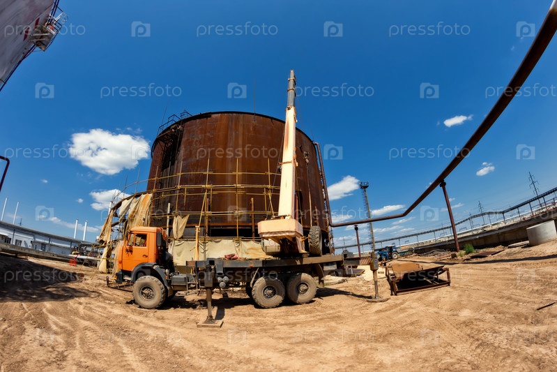Ремонтные работы по замене нижнего пояса старого ржавого резервуара для хранения нефтепродуктов