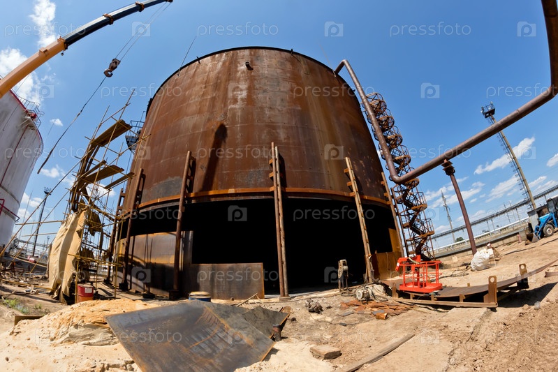 Ремонтные работы по замене нижнего пояса старого ржавого резервуара для хранения нефтепродуктов