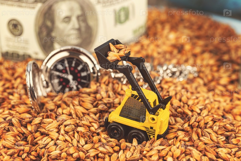 Концепция: сбор большого урожая зерна для продажи на мировых рынках