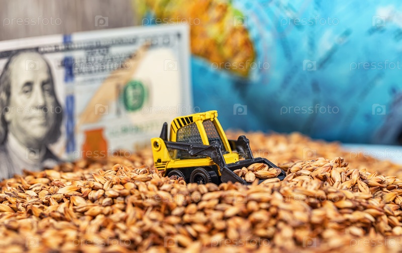Концепция: сбор большого урожая зерна для продажи на мировых рынках