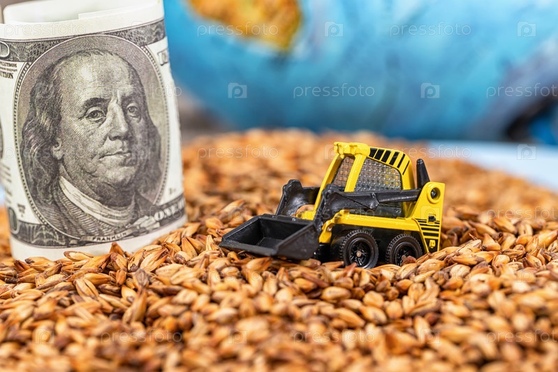 Концепция: сбор большого урожая зерна для продажи на мировых рынках
