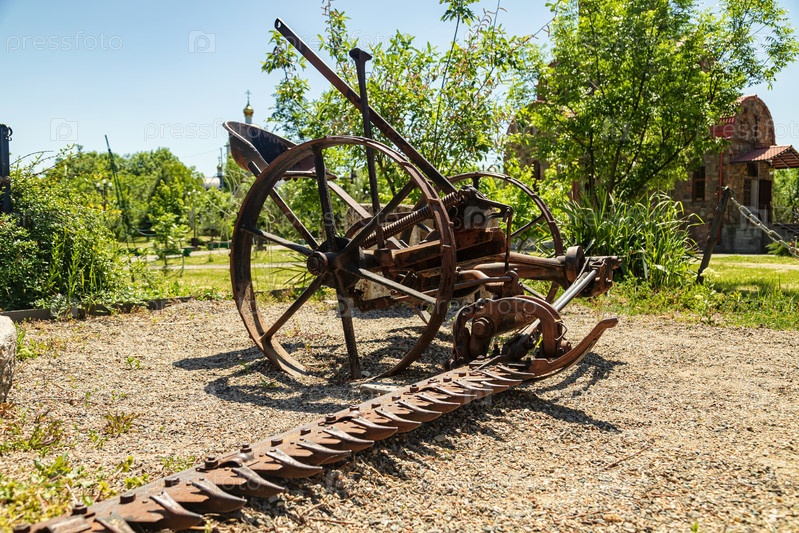 Старинные металлические механические устройства для сельского хозяйства и сбора урожая