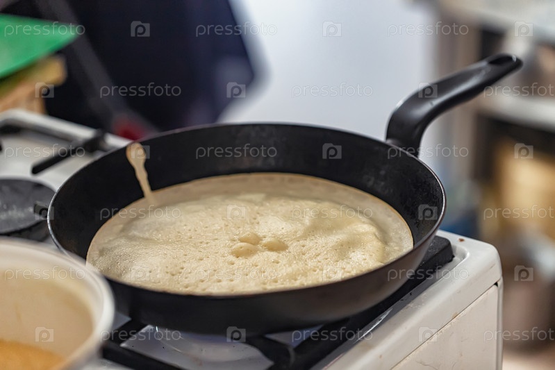 Приготовление блинов на старой кухне в деревне