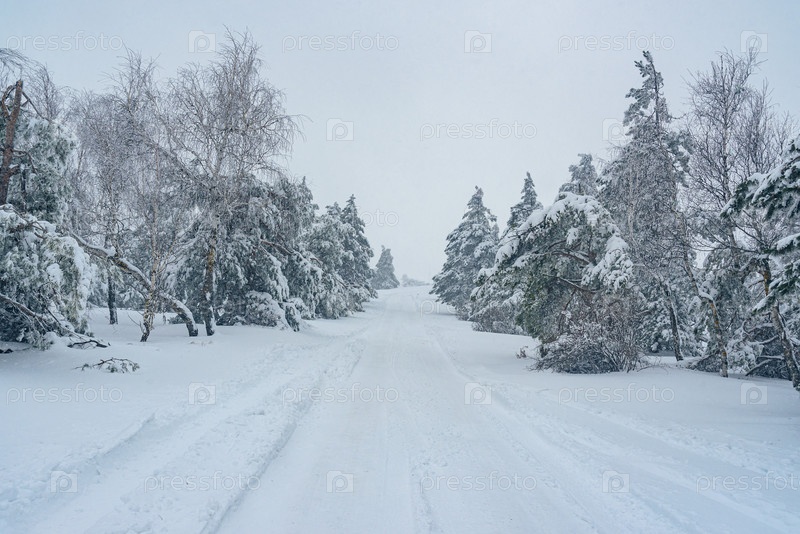 Заснеженный лес на горе Ай-Петри после метели. Крым