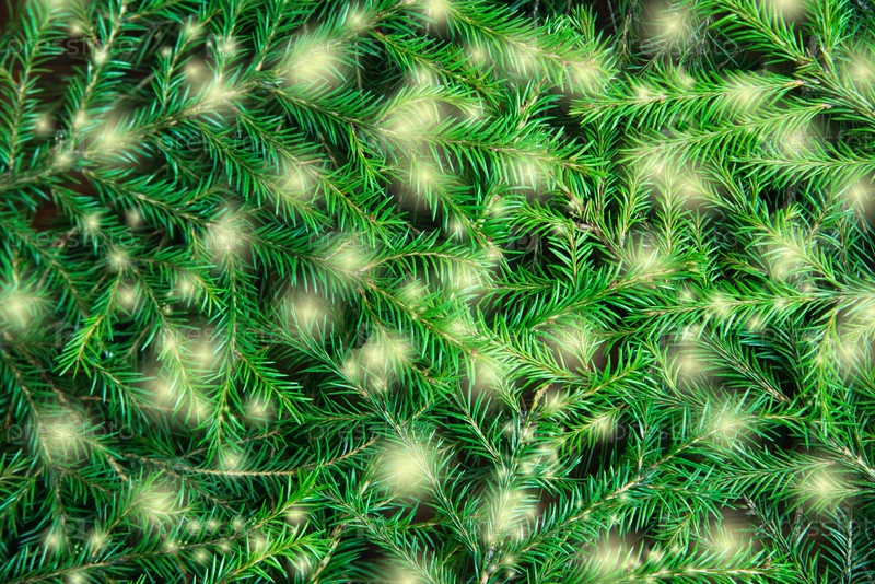 Фоновая текстура ветвей елки с огнями