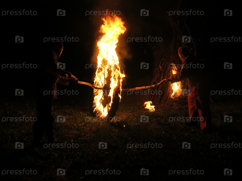 На древний славянский праздник Ивана Купалы люди поджигают и спускают в реку огненное колесо