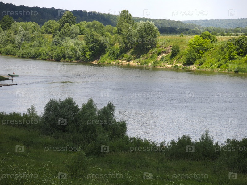 Летняя панорама русской реки Оки в солнечный день