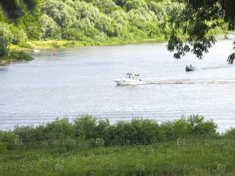 Летняя панорама русской реки Оки в солнечный день