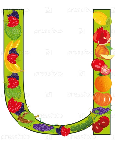 Английская декоративная буква U из фруктов и овощей
