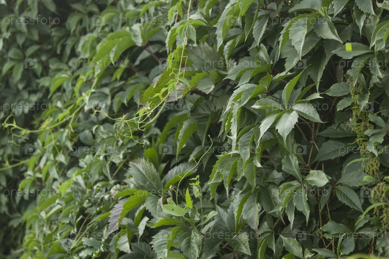 Стена, покрытая виноградно-зелеными листьями. Естественный фон от вьющегося растения. Вертикальное озеленение