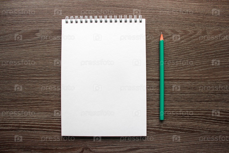 Чистый лист блокнота на столе, рядом с карандашом
