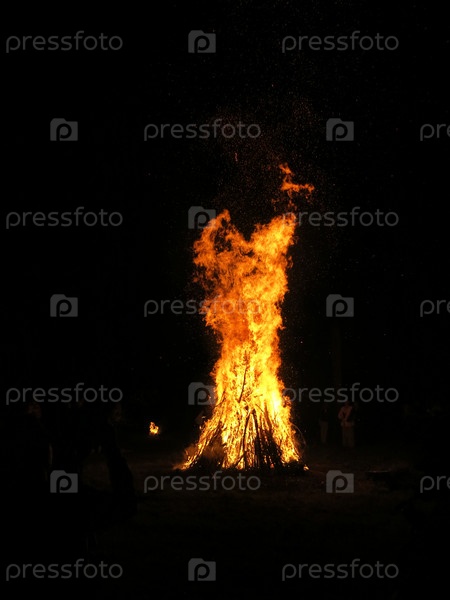 Летом ночью горит большой костер