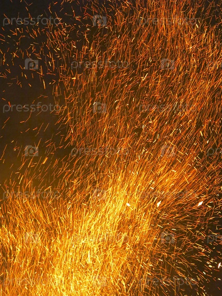 Ночью от большого костра летят искры