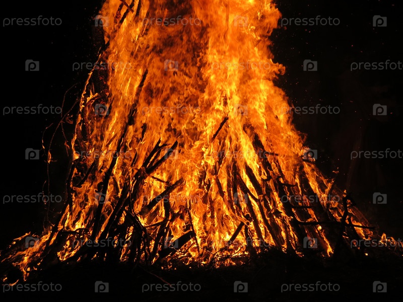 Летом ночью горит большой костер
