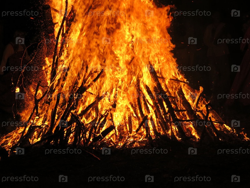 Летом ночью горит большой костер