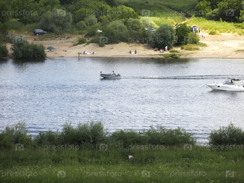 Летняя панорама русской реки Оки в солнечный день