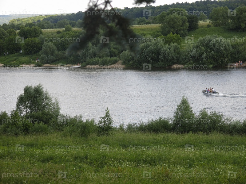 Летняя панорама русской реки Оки в солнечный день