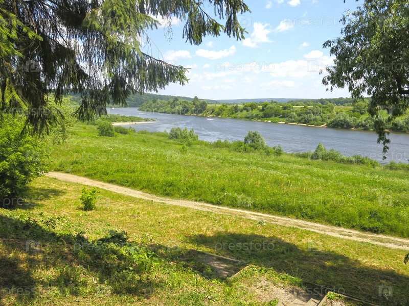 Летняя панорама русской реки Оки в солнечный день