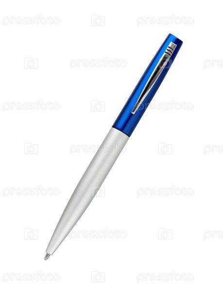Металлическая синяя ручка на белом