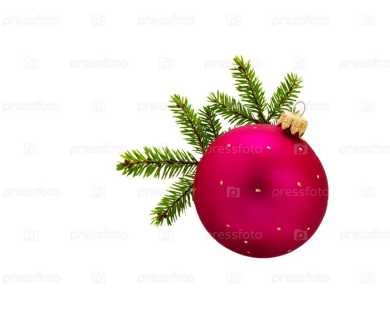 Еловые ветки с елочным шаром. рождественские украшения