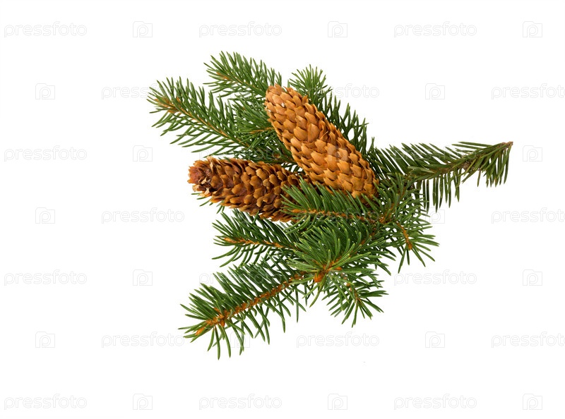 Сосновые иголки и шишки, ветка с зеленью