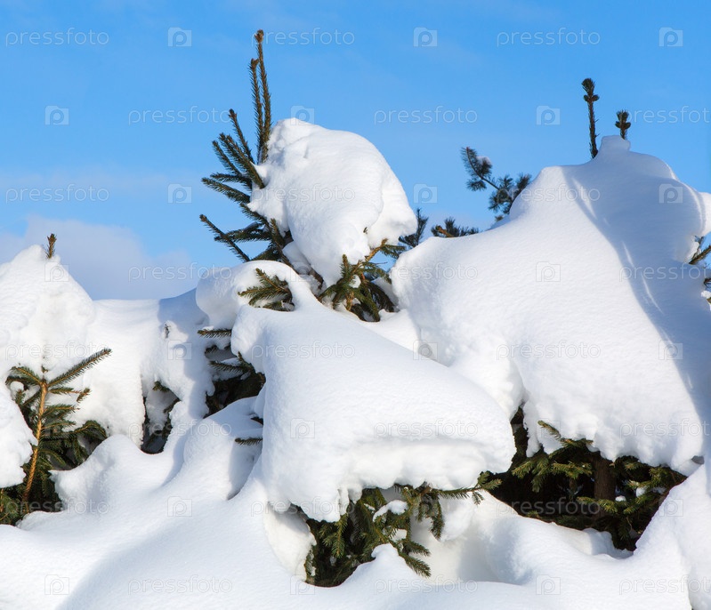 Заснеженные ели. Снежные заносы после снегопада