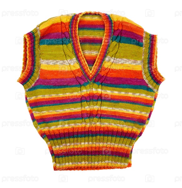 Свитер, изолированные на белом фоне. Полосатый красочный слаще. Вязаный теплый пуловер. Зимний джемпер