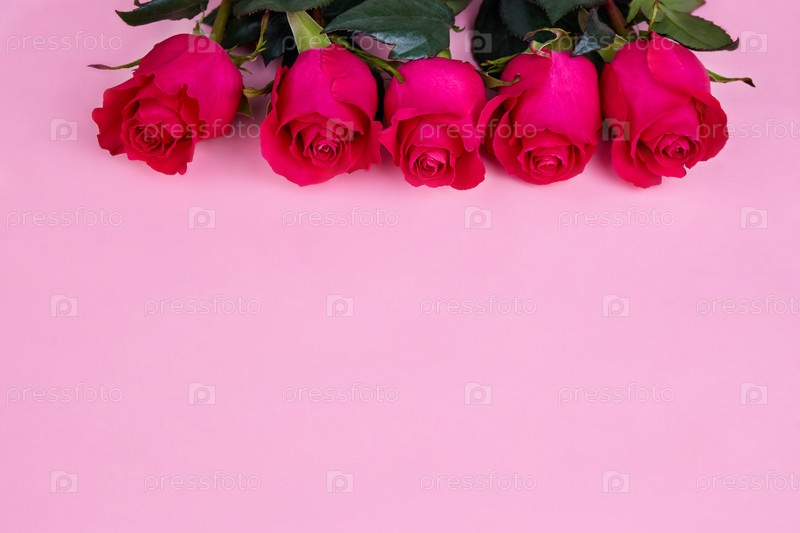 Розы на розовом фоне. Веб-баннер, открытка на День святого Валентина, День матери, День рождения