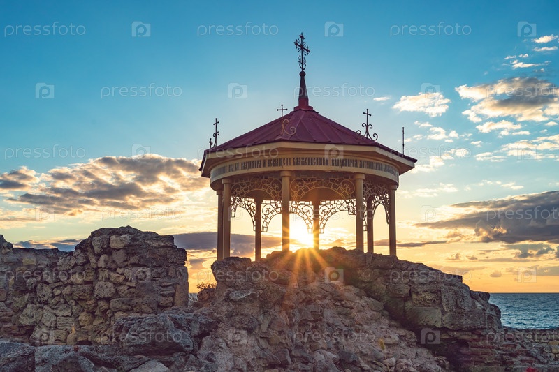 Красивый пейзаж с закатом и королевской беседкой