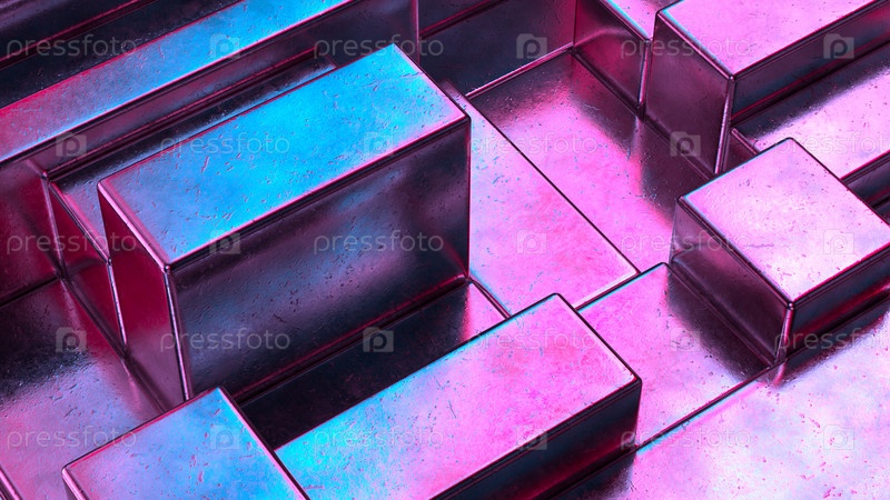 Абстрактное металлическое пространство-время киберпанка с отражениями 3d рендеринга