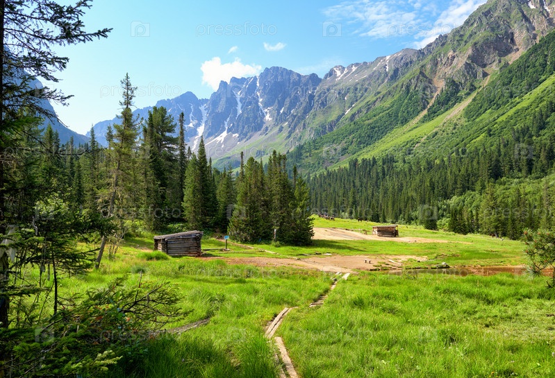 Избы минеральных ванн на лугу. Минеральные источники Чойган