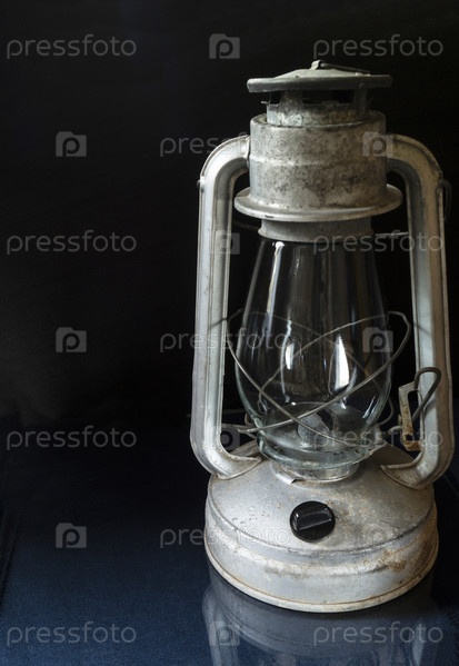 Стареющая лампа на столе с отражением на черном фоне