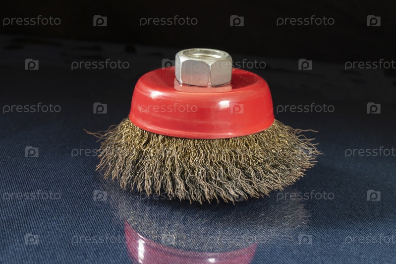 Красный круг из проволоки для полировальной машины на столе с отражением