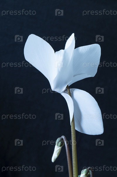Белый цикламен на черном фоне