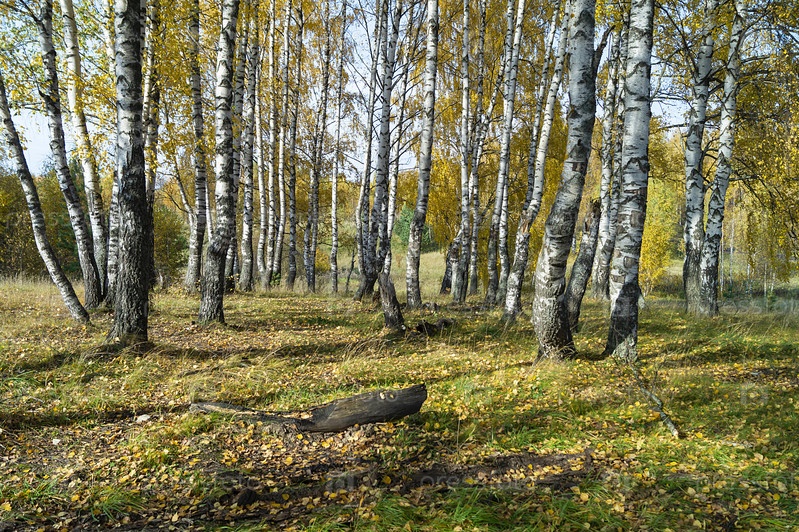 Естественный фон с березой у рощи к осени