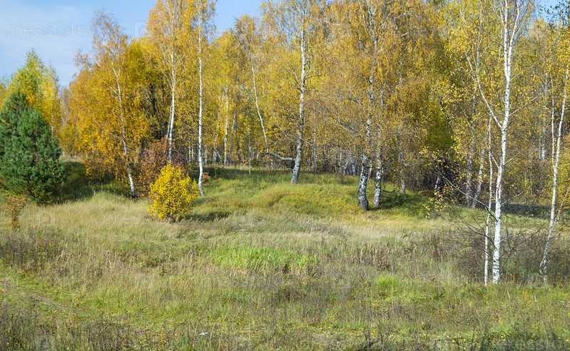 Естественный фон с березой у рощи к осени