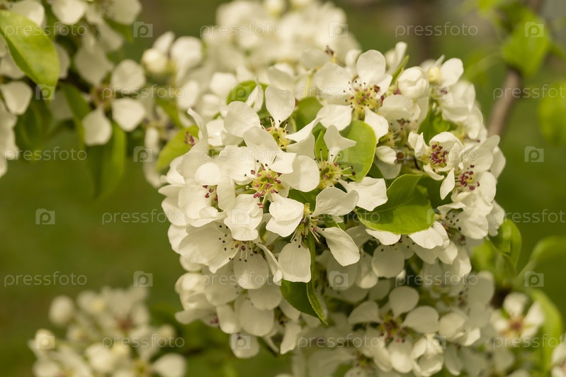 Груши Cyetenie в весеннем саду в сельской местности