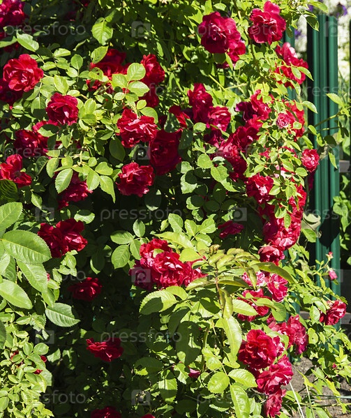 Куст красной розы в год срок времени
