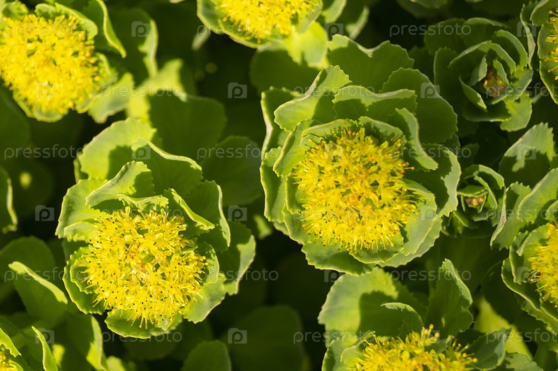 Зеленые стебли родиолы розовой весной