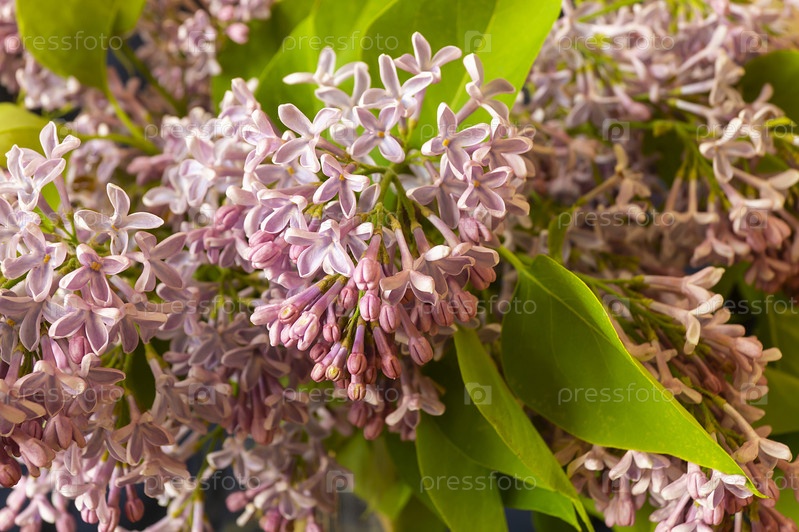 Весенний цвет сирени на фоне зеленого листа