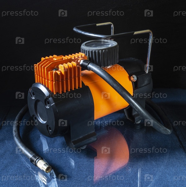 Автомобильный компрессор на стеклянном столе с отражением
