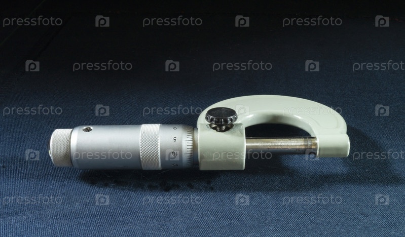 Инструментальный микрометр на синем столе на черном фоне
