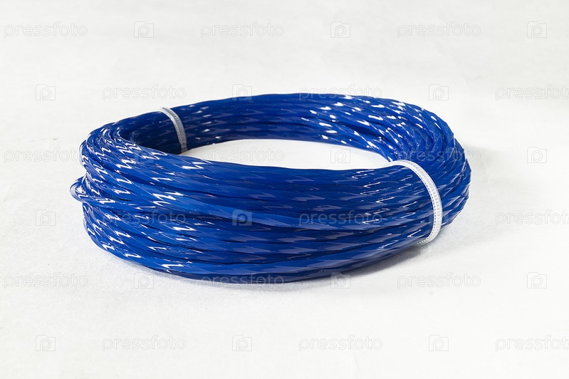 Синяя катушка для триммера изолирована на белом фоне