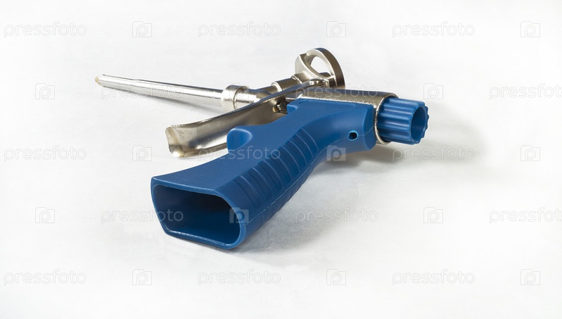 Инструмент для строительной пены на белом фоне