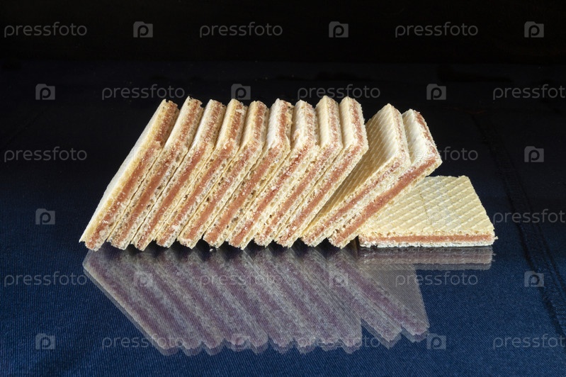 Вкусная вафля лежит на стеклянном столе с отражением