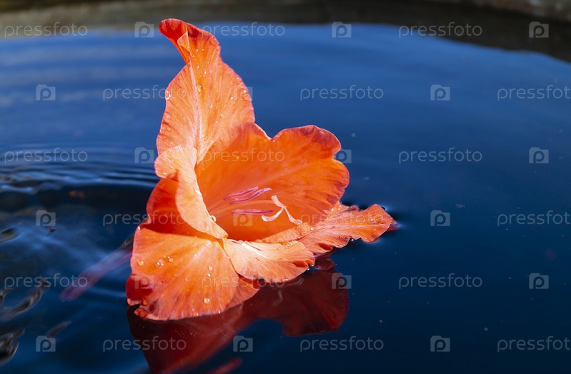 Красный гладиолус на поверхности воды
