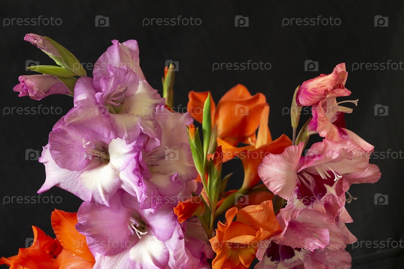 Букет гладиолусов на черном фоне